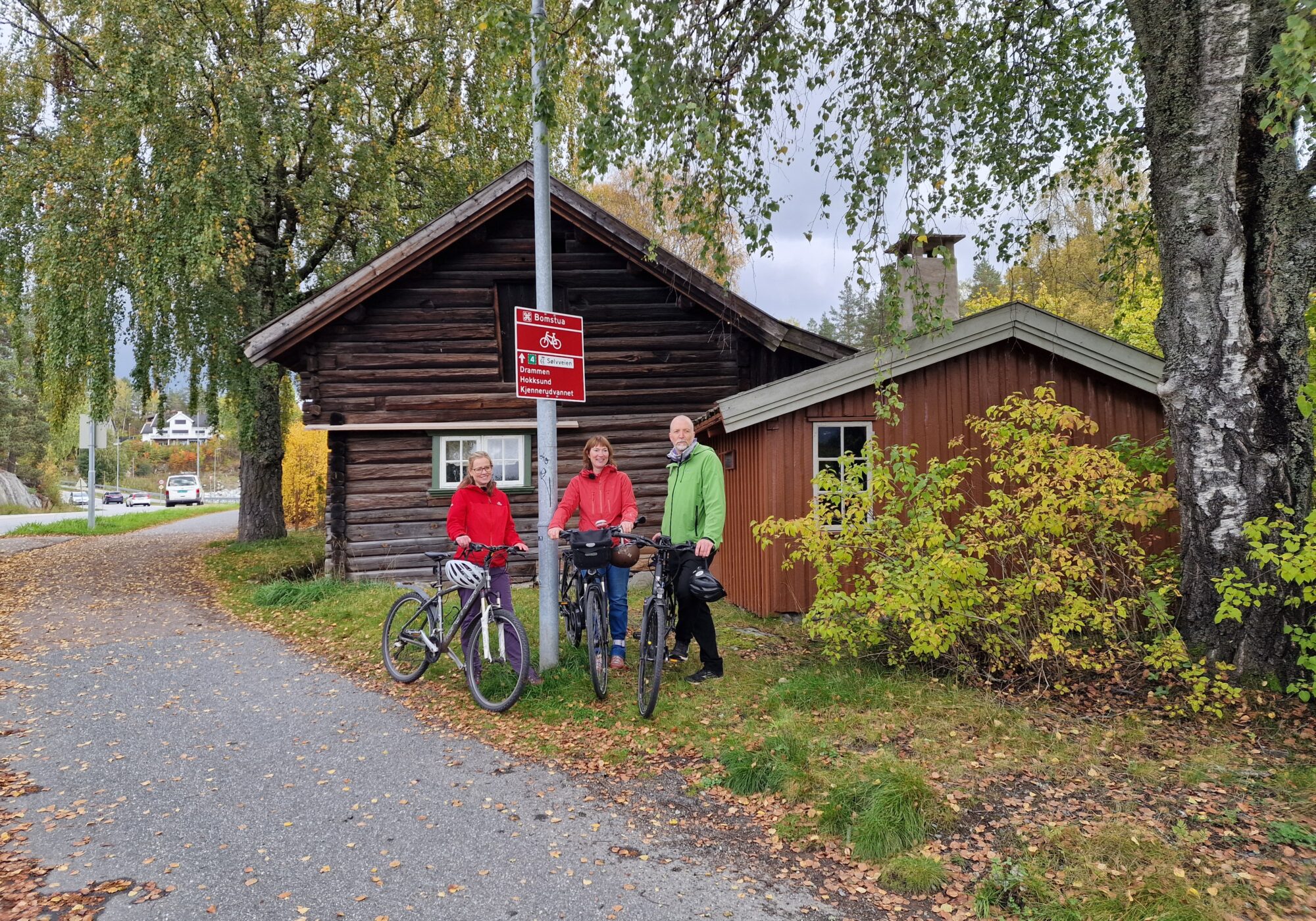 Norges første vei har blitt sykkelruten Sølvveien: I 2025 startet skiltingen også i Øvre Eiker, Drammen og Lier. Foto: Kongsberg kommune