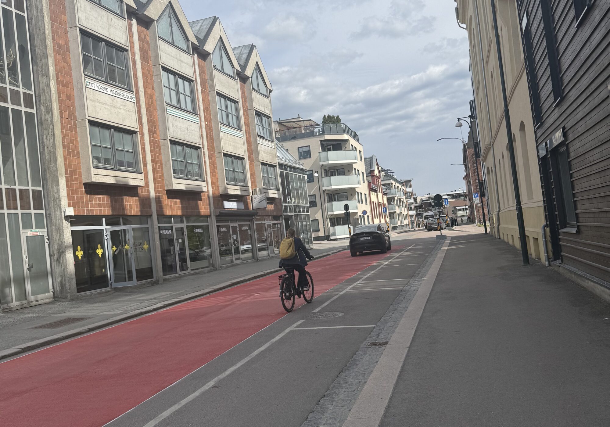 Oppgradering av gang- og sykkelveier: Sommeren 2025 var Drammens første sykkelprioriterte gater klare. Foto: Drammen kommune